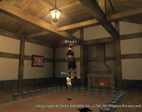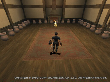 これはサブキャラですが、床に並んでいるのはレッドポットという、チョコボに乗って掘ると取れるアイテムで、正直使い道が判らなくて何となく保管してました。たくさん集めて迷路を造ってみようとかアホなこと考えていた気がします。