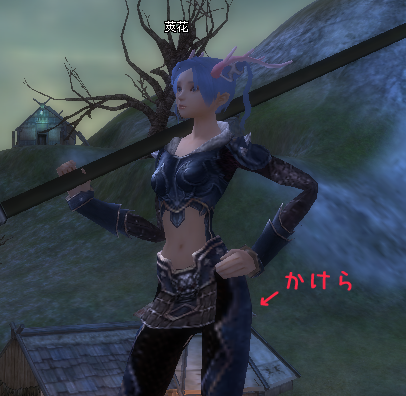 この装備は何故か、前から見るとヒラヒラは存在していません。
