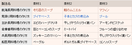 近頃の光栄は固定レシピ好きですね。持ち歩くレシピがげろげろ増えるのも腹立たしいですが、現地までわざわざ行かないと料理出来ないのも個人的にはむかつきます。