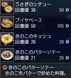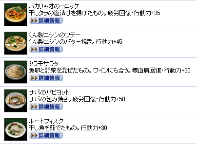 あとはジャムやじゃがいも、アンチョビが必要な料理があったりしますが、本体キャラがただいま収集しながら北上中ですので、ヨーロッパに戻るまでしばしお待ち下さい。