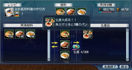 クリスティナの固定レシピには自動生産がないんですねえ。ぶつぶつ。