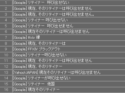 リテイナーが呼び出せるのは3国ともエーテライトの近くにあるエリアになっており、知っていれば迷うことは特にありません。ですが、知らなかった場合、こんな風に検索をして調べなければ判らない仕様になっております。
